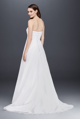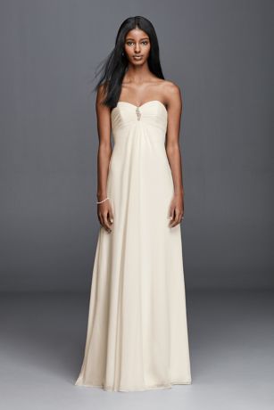 Chiffon empire waist plus size wedding dress | david's bridal. Flowy and flattering, this strapless chiffon maternity wedding gown keeps your bump comfy and your day glam. You will effortlessly speak volumes in this simple and sweet casual wedding dress! Never in my wildest dreams, would i have imagined i would see as many wedding dresses as i have over the years. Beautifully detailed, fitted bodice flows into a soft and flowing chiffon skirt.