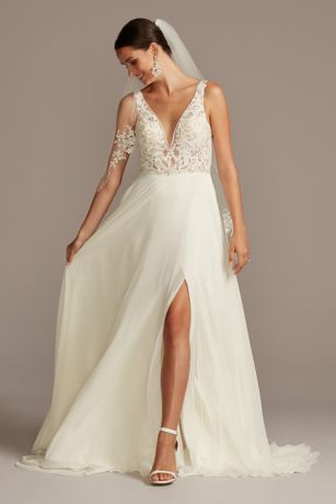 Whether you're planning a destination wedding on the beach or an intimate garden celebration, chiffon can be used to create a less formal and comfortable. It was originally made of silk, but today it's more likely constructed from synthetic here at the knot, we have all the chiffon wedding dresses you could ever want. I would definitely pair with fun heels to add an edge to this sweet dress. Chiffon empire waist plus size wedding dress | david's bridal. Последние твиты от david's bridal (@davidsbridal). See below for more great chiffon wedding dress ideas that we love! Magnificent is an understatement for this ruched tulle wedding dress. Jaeden beach wedding dresses for bride strapless sweetheart bridal gown chiffon pleat wedding gowns. Find backyard weddings, short dresses, vintage wedding decorations and unique ideas for less traditional nuptials. From city hall weddings and outdoor weddings to casual wedding attire, we have all the best casual casual wedding. Soooo, at david's bridal they have mesh and chiffon. A plunging sweetheart neckline is accompanied by illusion cap sleeves, glittering beadwork, and a sweeping train. That is why i did not wear this dress because i found out that i needed at least a size 10 to fit into their dresses.